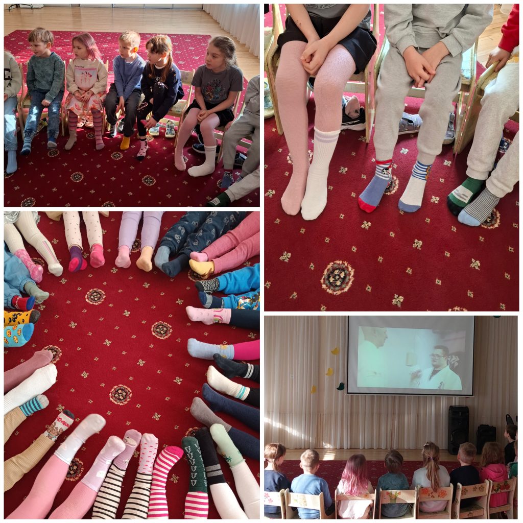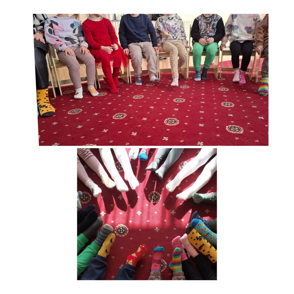 Po pokalbio ugdytiniai žiūrėjo mokomąjį filmuką „Labiau panašūs nei skirtingi“. Vėliau visi prisidėjo prie socialinės akcijos – šoko „skirtingų kojinių“ šokį, žaidė draugystės žaidimus ir sukosi draugystės ratelyje. Ši diena vaikams paliko daug gražių emocijų ir dar kartą priminė, kaip svarbu priimti, suprasti ir gerbti vieniems kitus.